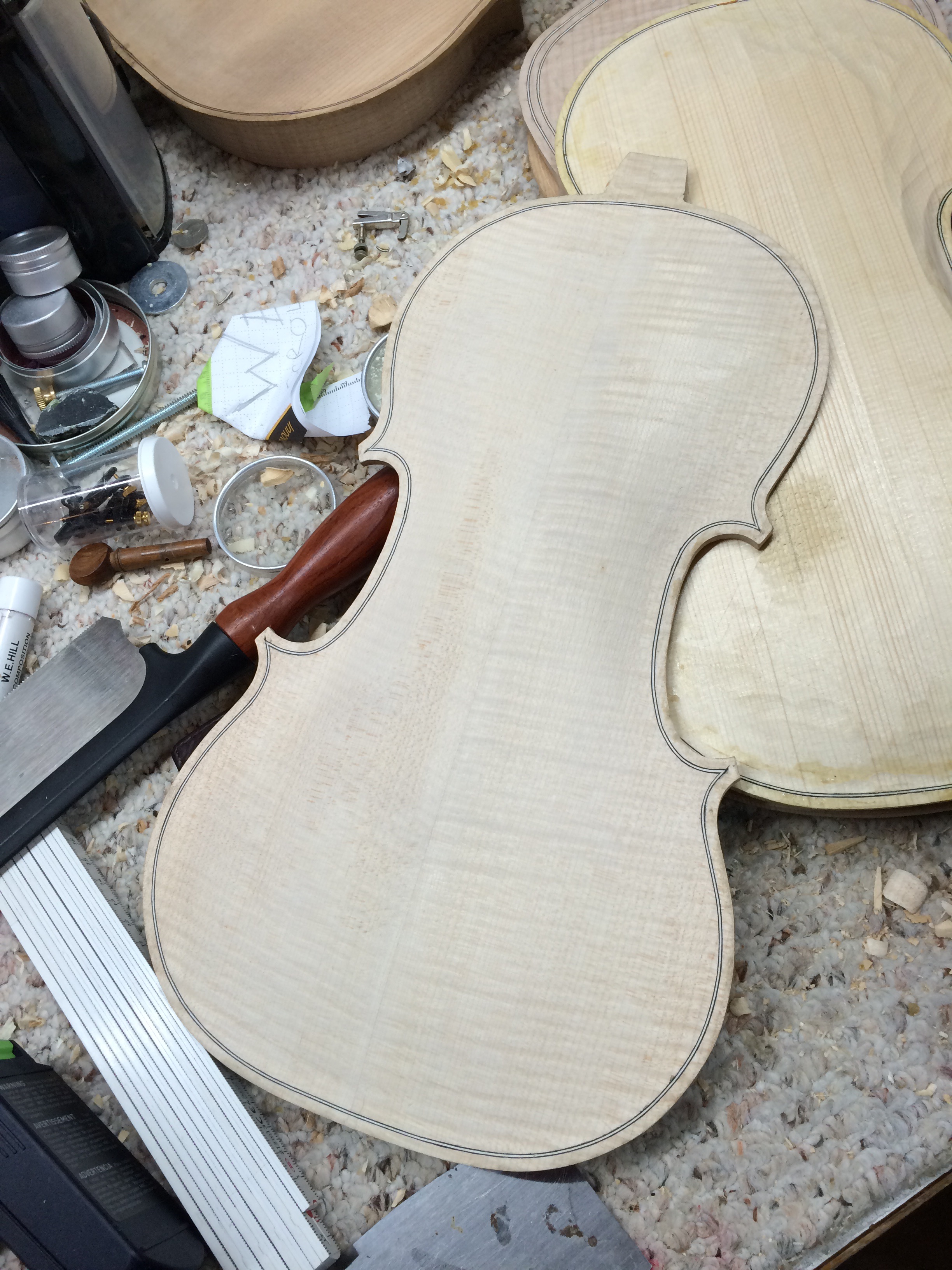 In 2015 I took on a new commission which has changed the approach to the creation of new instruments. Three things that I’ve learned with the creation of new instruments; you are in the shadow of giants. The great Italian masters set the bar very high with their masterful violins that seem to appreciate in value every minute. Two, they worked in their own style and weren’t copying off of a poster or some pre-purchased plan. I have created many molds and forms based on these great instruments, my aim in construction is to achieve the greatest sound and response from the materials I have selected with my customers, rather than try to hit some magic number, thickness or weight. Most importantly is never stop learning. Every instrument has something to teach you weather it’s a new one that I’m creating or an older one. Good instruments are timeless and will outlast all of us.